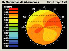 It is now possible to utilize this technology to record detailed information about the visual characteristics of the eye. Unlike standard measuring devices such as corneal topography, which measure the front surface of the eye called the cornea, the wavefront scans the way the entire optical system processes light.